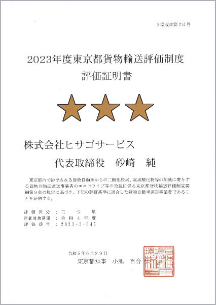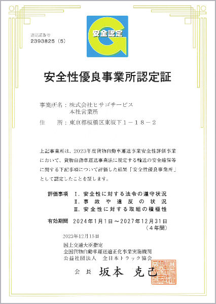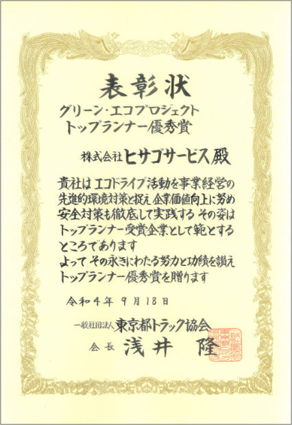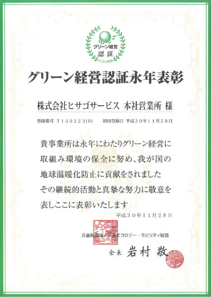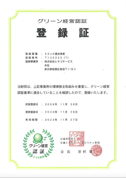 平成20年11月、交通エコロジー・モビリティ財団の「グリーン経営認証」を取得しました。